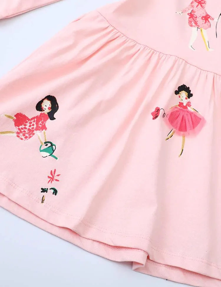 فستان فتاة صغيرة مطبوعة بأكمام طويلة