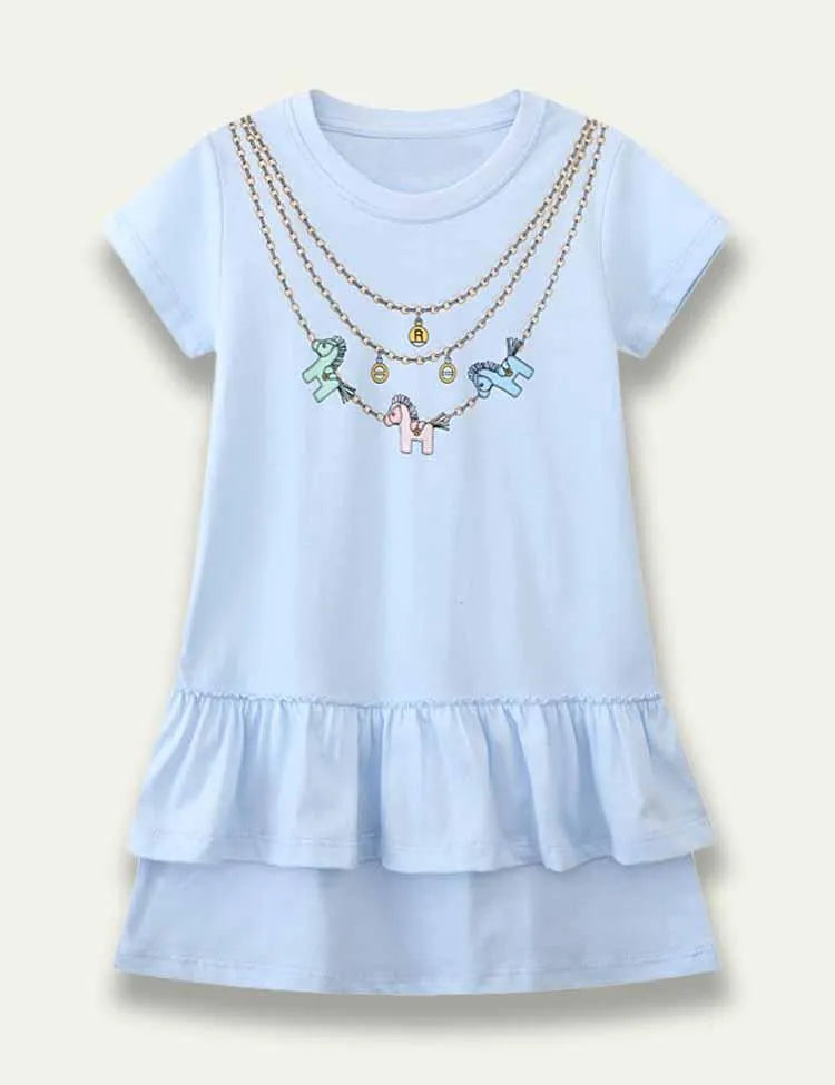 فستان مطبوع عليه قلادة على شكل حصان كارتوني