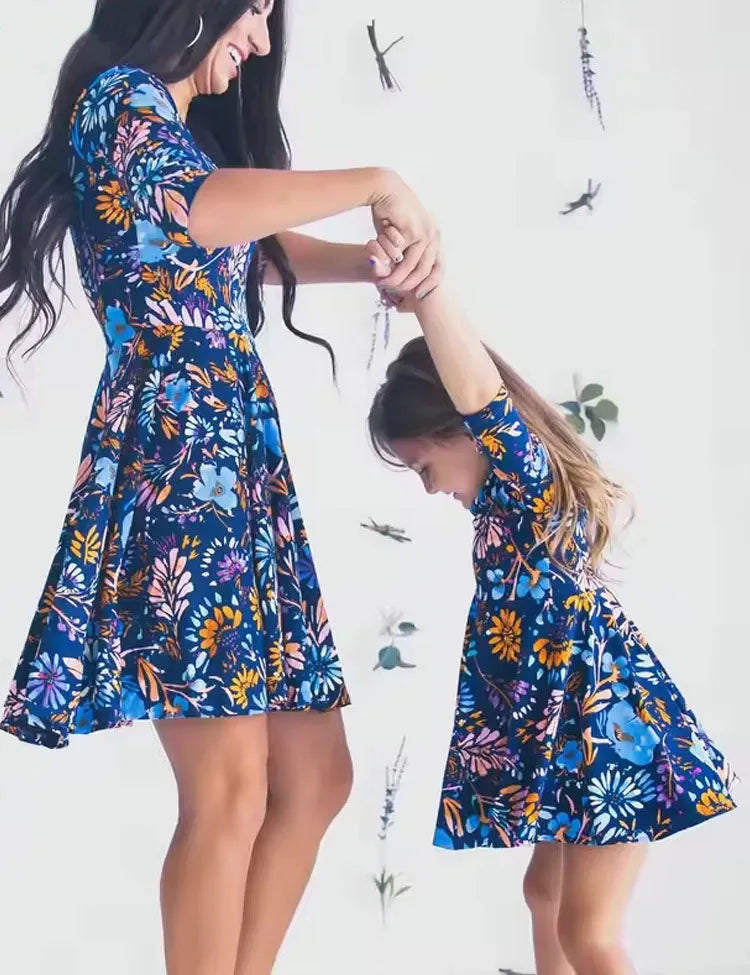 فستان مطبوع عليه زهور للعائلة