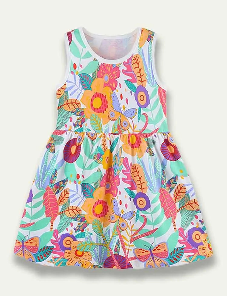 فستان بدون أكمام بطبعات زهور