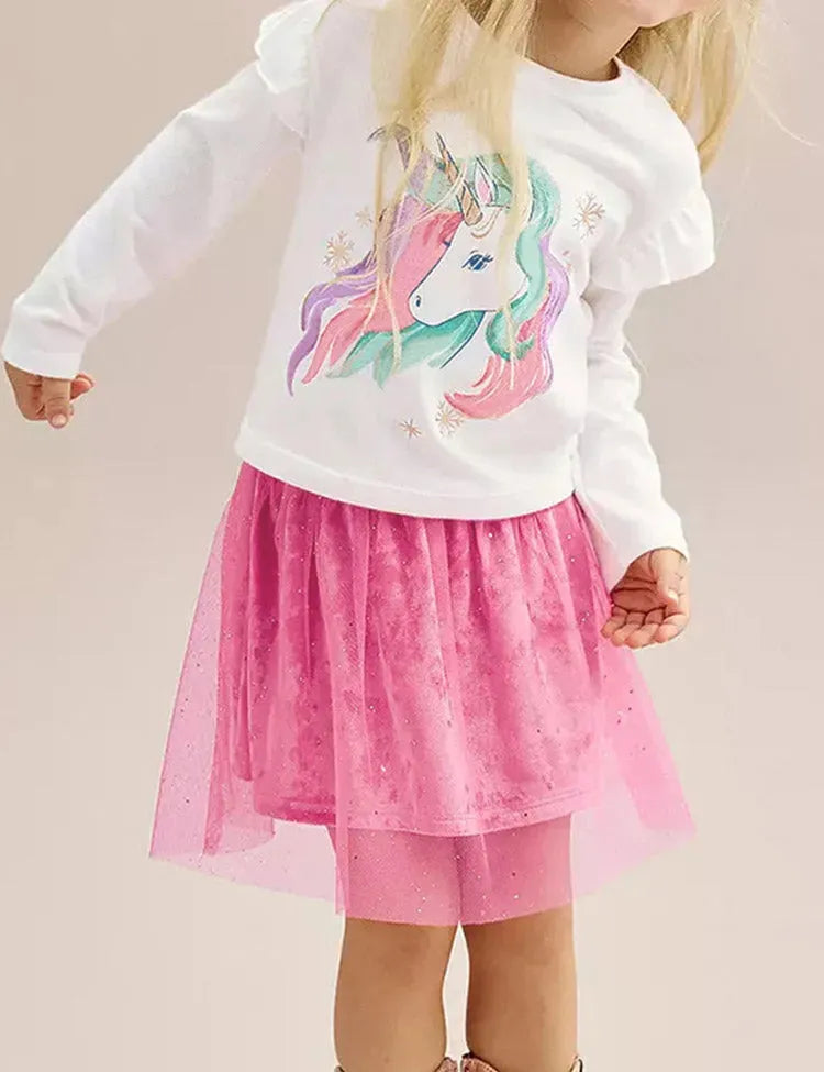 Langarm-T-Shirt-Set aus Fleece mit Einhorn-Aufdruck